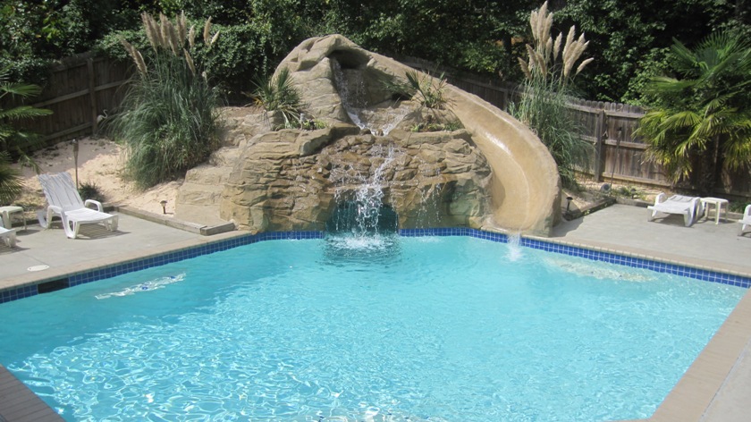 The Pool & Grotto provides a tranquil oasis just steps away from the beach. The pool features a spectacular waterfall as the centerpiece of the area. Swimming thru the waterfall takes you into the grotto, a hidden enclave underneath the waterfall. Climb up the side of the waterfall to find a breath taking slide back into the pool.